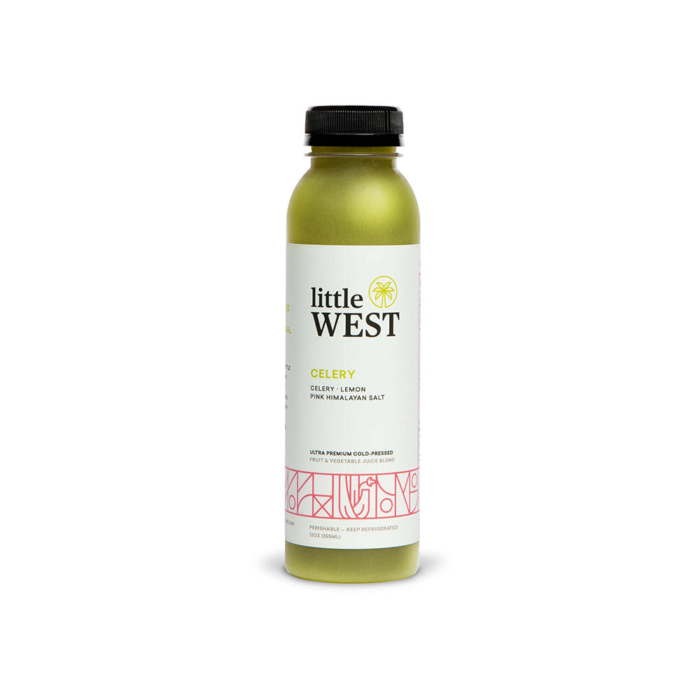 Little West’s Celery is a seriously hydrating, refreshing, cold-pressed celery juice. It’s full of plant-based goodness and packed with essential vitamins and minerals. Each serving of this powerful celery juice blend provides you with 15% vitamin A, 10% vitamin C, 6% calcium, 2% iron, and only 25 calories! Our Celery juice blend is full of antioxidants and contains only 3g of naturally occurring sugar per serving. Energizing, natural goodness in a convenient-sized bottle!